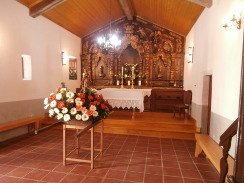Capela de Nª Sª da Conceição com muitas flores no seu interior e guardando o andor da imagem de Nª Sª para a procissão que se realiza hoje.