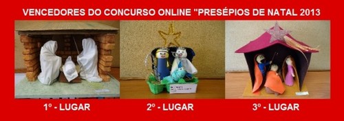 Apresentam-se os 3 primeiros classificados no concurso de presépios que decorreu online através do facebook até ao dia 13 de Janeiro, neste sitio “CONCURSO DE PRESÉPIOS 2013”.