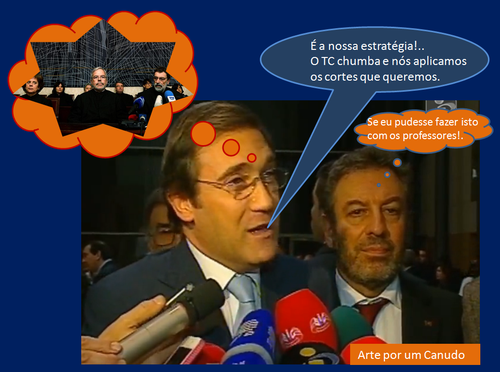 Passos Coelho queria cortes nas pensões, o tribunal constitucional chumba-lhe as intenções e ele alarga a fasquia da contribuição extraodinária de solidariedade à maioria dos pensionistas. Também vai aumentar a contribuição para a ADSE, ADM e SAD de 2,5% para 3,5%. Depois diz e quer que acreditemos que não são aumentos no custo de vida, porque, aumentos para ele é se tivessem o nome de impostos. Muda o nome e julga que o efeito não é o mesmo. E esta hein?