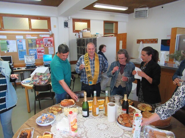 Foi organizado um lanche na sala de convívio por todos os alunos, docentes e pessoal não docente.