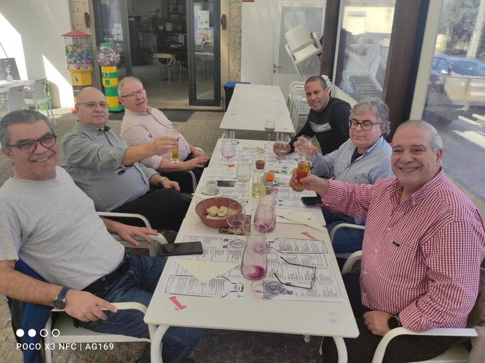Hoje, dia 20 de fevereiro de 2024, foi o 4º encontro destes velhos amigos de Penafiel. O encontro foi no restaurante #barbaazeda , ao sabor duns pratos tipicos, sabores da terra, e nomeadamente, o arroz de bacalhau com grelos. Depois dum repasto excelente o grupo foi dar uma voltinha pelas termas de Sangemil. Pena foi que estava tudo fechado mas deu para apreciar a beleza do local. (ver fotos) Voltamos para a casa do anfitrião e apreciamos umas iguarias. Uma voltinha por Viseu e depois foi a despedida deste 4° encontro dos amigos de infância de Penafiel. Moraram todos na mesma zona e atualmente um em cada canto do país e até alguns no estrangeiro. Deste encontro gostaram e prometeram voltar com as suas caras metades. Os amigos são muitos mais, mas nem todos são empresários ou trabalhadores por conta própria e reformados e sendo este encontro a uma terça-feira, têm desculpa por não estarem aqui. Talvez da próxima sejam mais ..