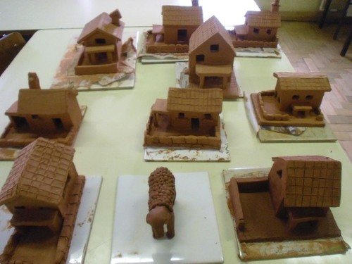 Nas aulas de Oficina de Artes os alunos elaboraram o projeto duma casa a seu gosto e depois construíram-na em barro. Estes trabalhos estão em fase de secagem e depois serão cozidos para ganhar resistência e impermeabilidade e depois ainda serão decorados através da pintura. Fica o registo a seu pedido dos trabalhos como eles gostam.