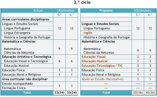 Pelo que se verifica no quadro, a disciplina de Educação Visual e Tecnológica é dividida em Educação Tecnológica e Educação Visual. Educação Visual passa a ter 2 tempos no 5º e 6º anos e Educação Tecnológica em desdobramento com TIC, tem também 2 tempos no 5º e 6º anos. Se esta for a interpretação do ministro, do mal o menos, continua-se com 4 tempos embora separados. De qualquer forma EVT perde sempre, porque eram 4 tempos e 2 professores, agora serão 4 tempos e 3 professores. Esperemos para ver o que a discussão pública até finais de janeiro nos vai dar.