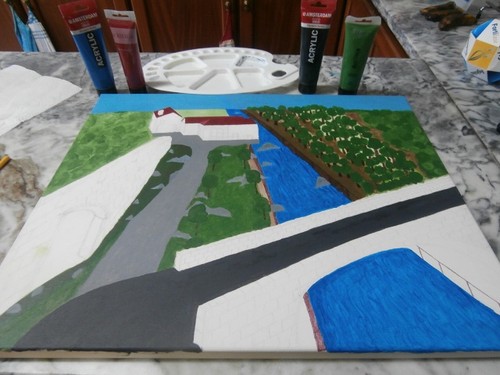 Projeto de Pintura em Acrilico sobre tela da zona onde se encontra a Ponte, o Rio, o Aqueduto e o Lagar de Azeite de Parada de Gonta que vão ser pintados numa só tela. Este foi o sábado passado em casa e que deu inicio a este projeto.