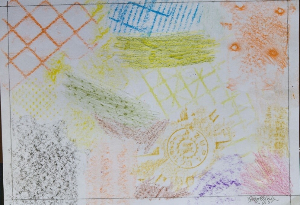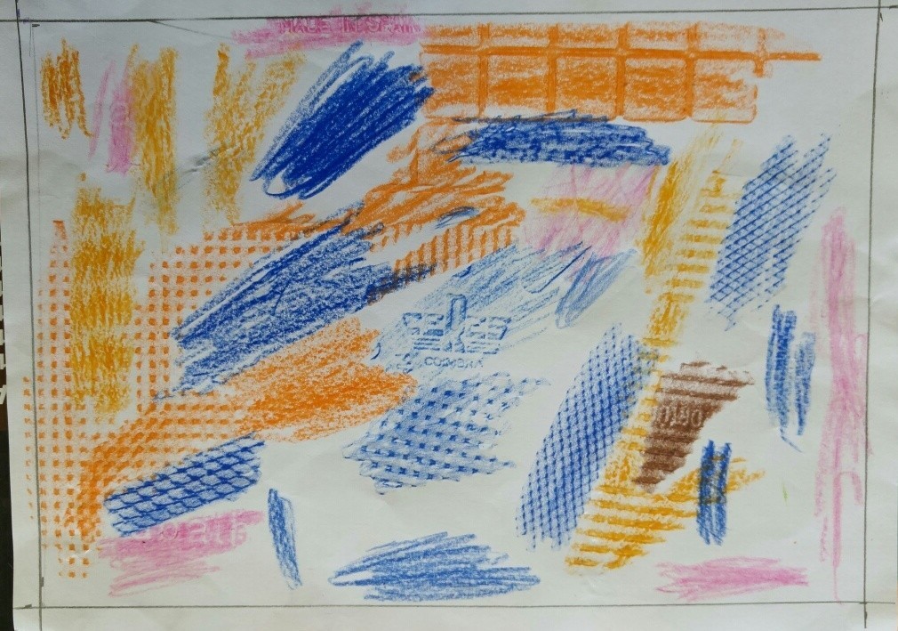 À procura de Texturas na aula de Educação Visual do 5º ano. Na sala, fora dela e do que trouxeram, as texturas por decalque ou fricção foram aparecendo e o resultado está estampado nas imagens.